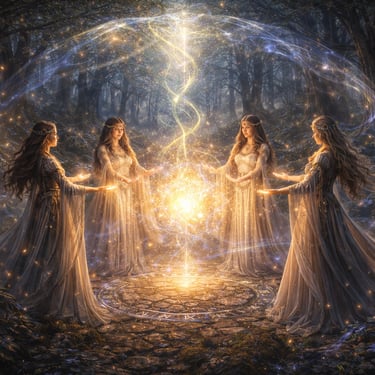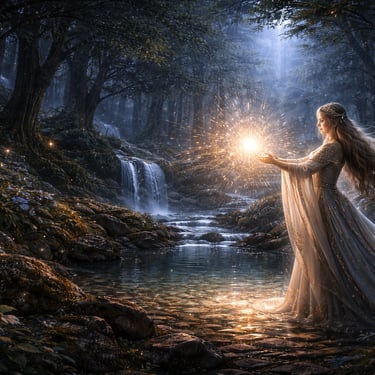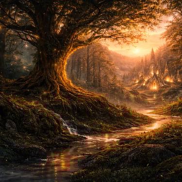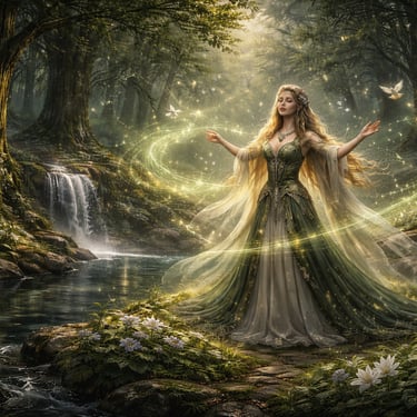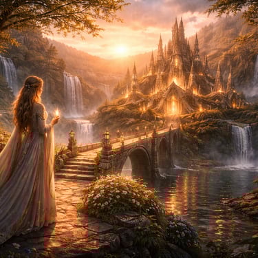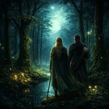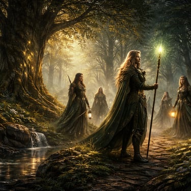 Lórenvalë – Songs Beyond the Elder Woods is an elven choral and ambient fantasy album set at the living border of the Elder Woods, with the distant Ashlands beyond.